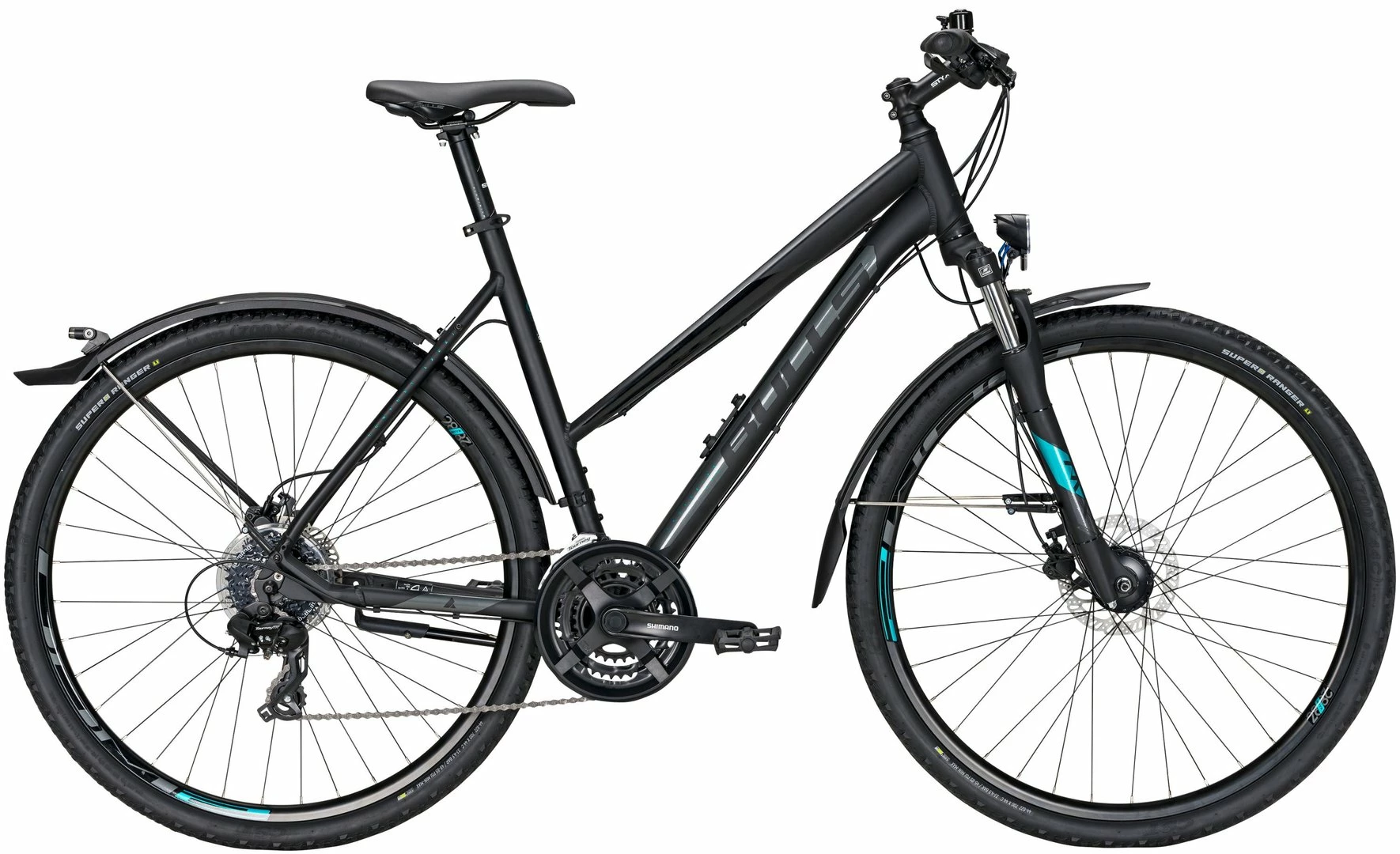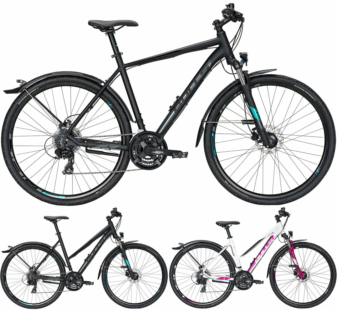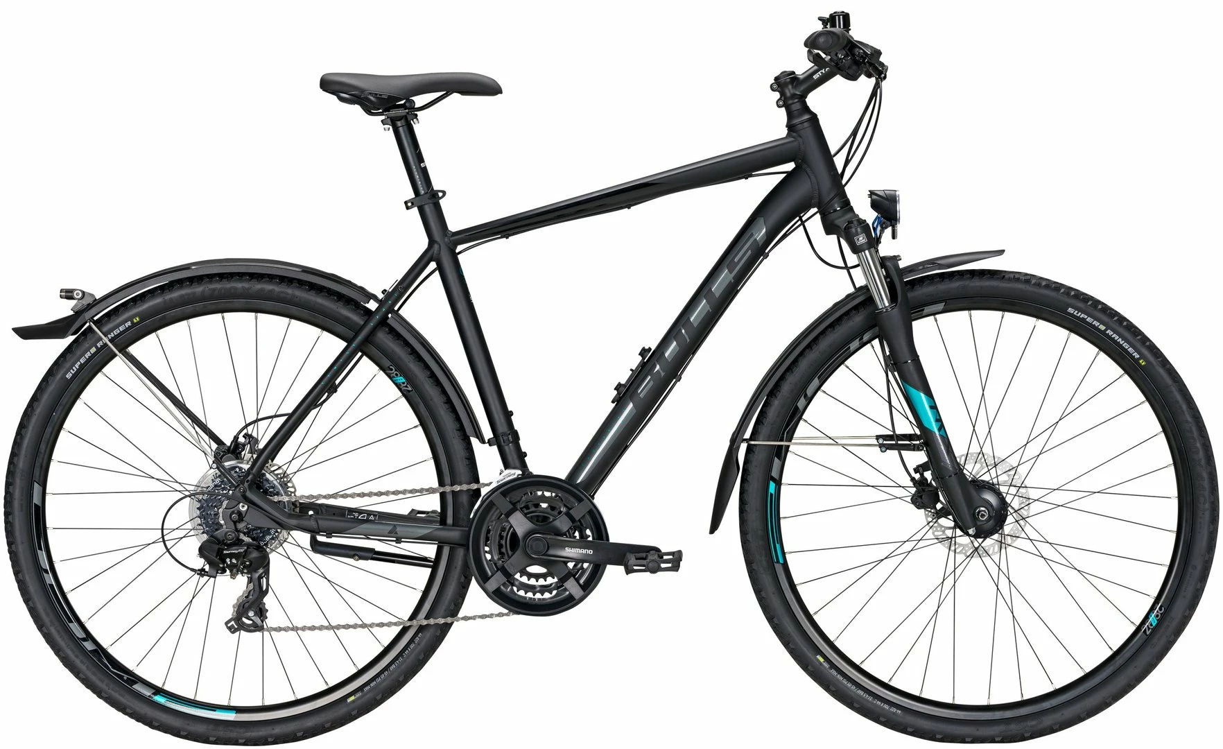 7005 Alu Rahmen, Suntour NVX-DS Federgabel einstellbar, 24-Gang Shimano Altus Schaltwerk und Schalthebel, Tourney Umwerfer und Kurbeln, Tektro HD-M275 hydr. Disc-Bremsen, DDM-2 Hohlkammer-Felgen, STYX Downhill-Lenker, A-Head Vorbau und Sattelstütze, Naben