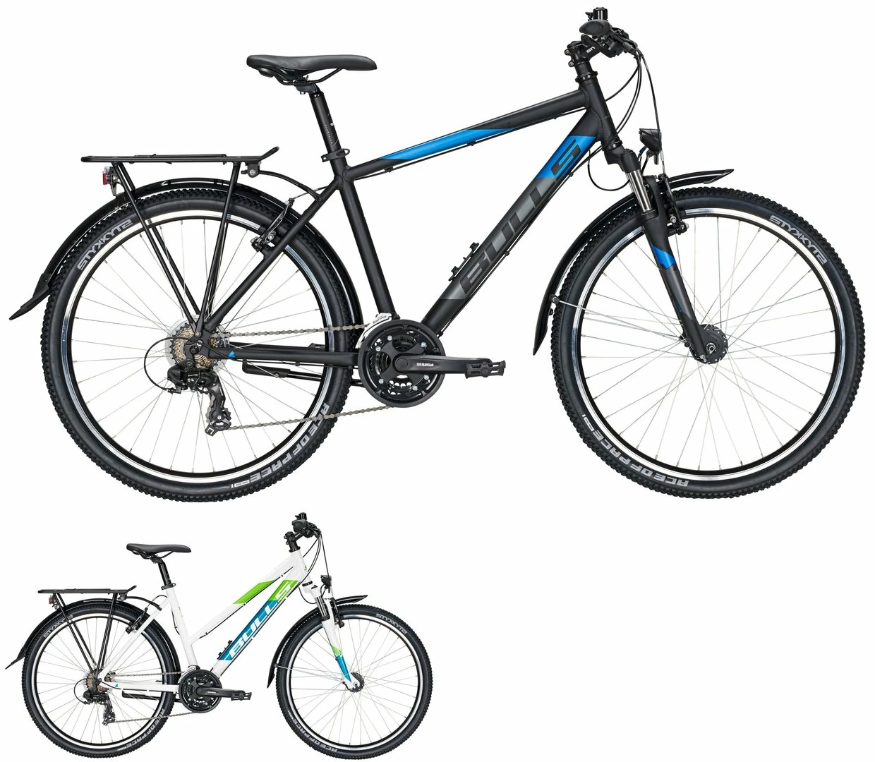 6061 Alu-Rahmen, Suntour M-3010-P Federgabel, 21-Gang Tourney Schaltwerk und Umwerfer, Altus EZ-Fire Schalthebel, STYX Kurbeln, Shimano Nabendynamo, Tektro V-Bremsen, STYX Sattelstütze, A-Head Vorbau, 30 Lux LED-Lampe, Standrücklicht, Aluminium-Rohrgepäckträger
