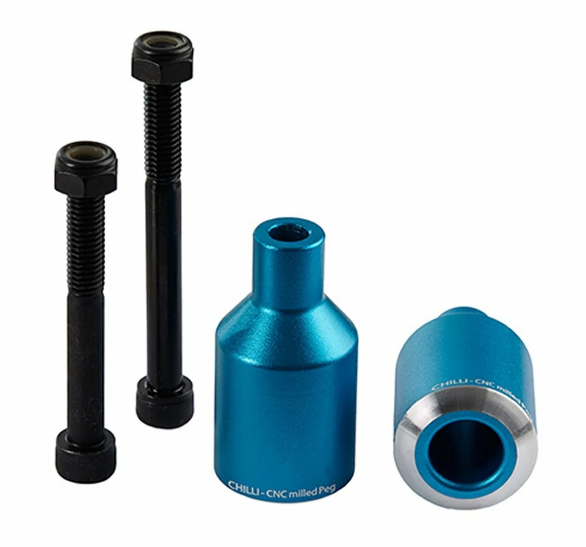 Chilli Rocket Pegs passen durch ihre Form perfekt auf das Handrail und sorgen somit für sicheren Halt. Die Pegs sind leicht zu montieren. Im Set sind: 2x Peg, 1x Achse vorne (6,7cm), 1x Achse hinten (7,7cm)