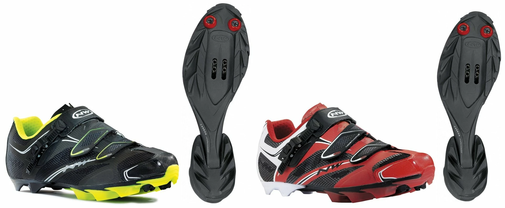 MTB-Sohle aus thermoplastischem, mit Carbon versetztem Material, Lauffläche aus Naturgummi, für niedriges Gewicht und maximalen Grip auch bei schwierigsten Gelände. Die Sohle ist mit allen SPD-MTB-Systemen kompatibel.