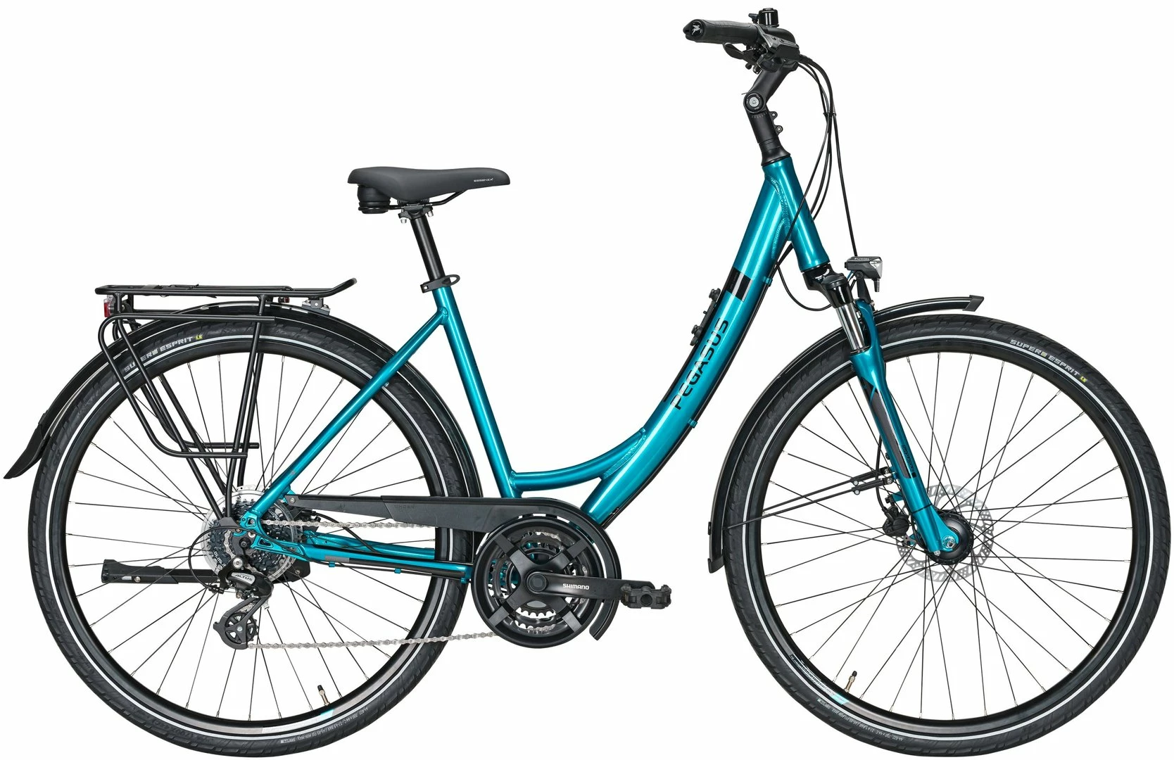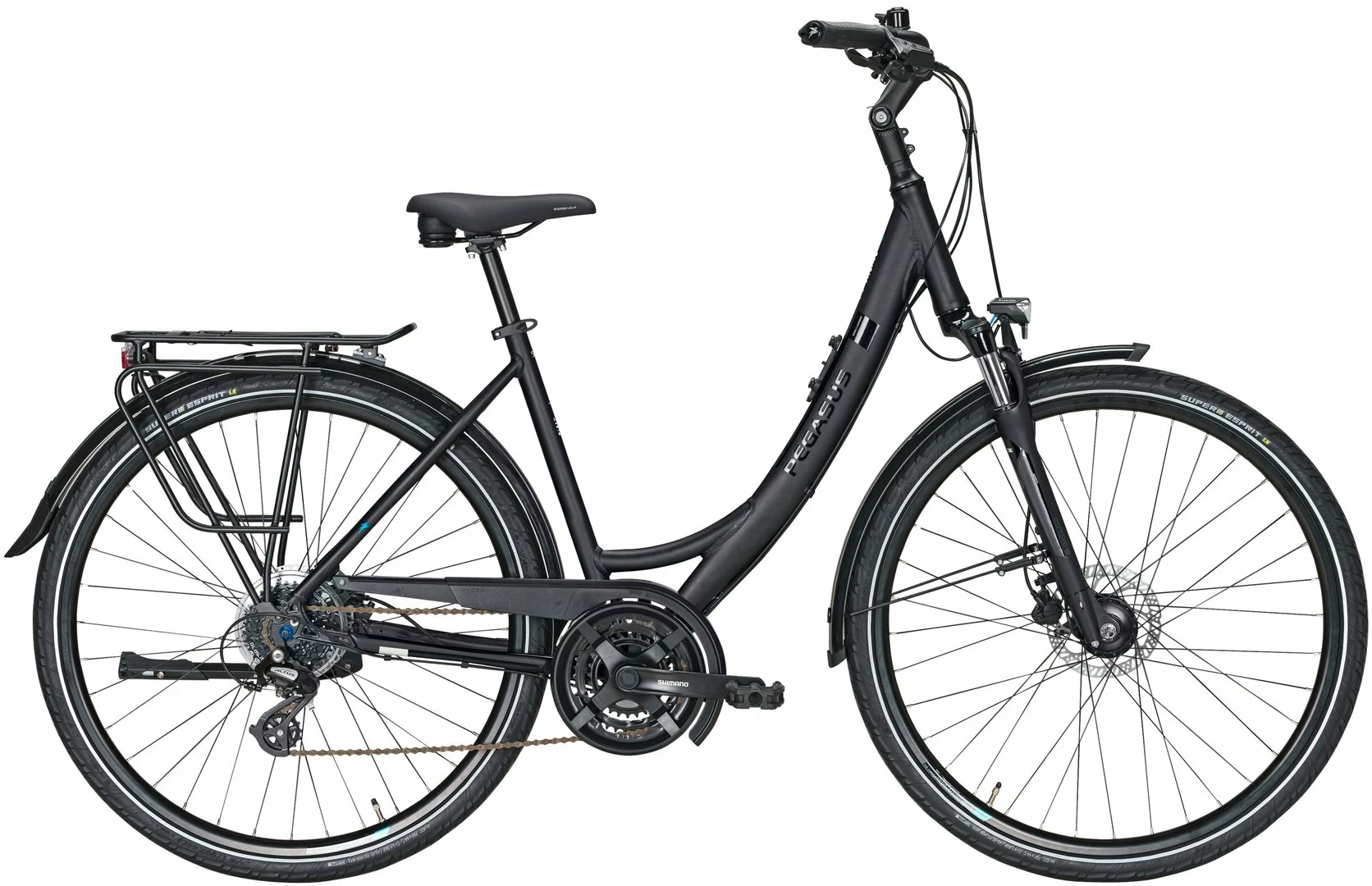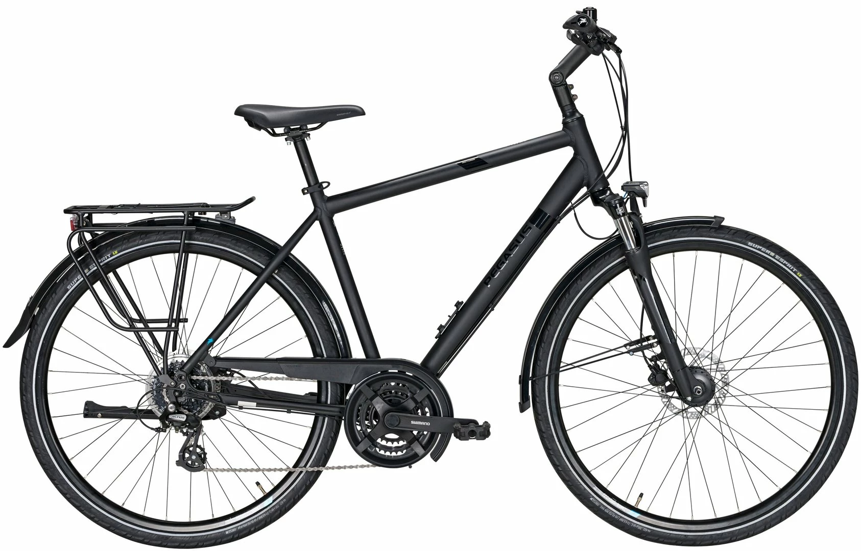 6061 Alu-Rahmen, Suntour NEX-DS einstellbare Federgabel, Altus Schaltwerk und Schalthebel Tourney Umwerfer und TY301 Kurbeln, Tektro HD-T275 Scheibenbremsen, DDM-2 Hohlkammer-Felgen, Super Esprit Reifen 44-622, verstellbarer Vorbau mit 31,8mm Lenker, Ergo-Griffe, Nabendynamo, 20 Lux LED-Lampe, Standrücklicht, einstellbarer Hinterbauständer, Horn Catena Kettenschutz, Gummikralle Pedale