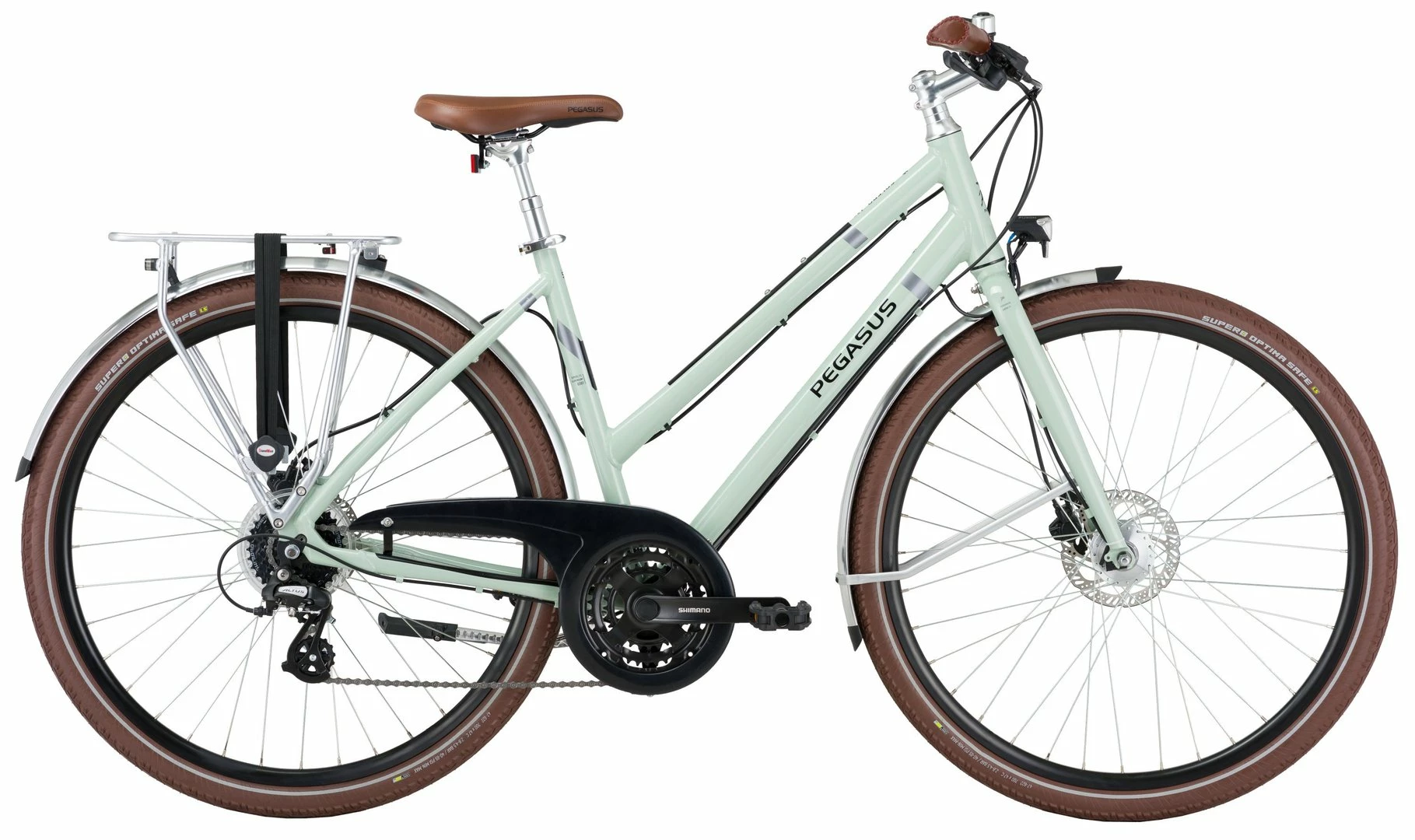 6061 Alu-Rahmen, Aluminiumgabel Federgabel, Altus Schaltwerk und Schalthebel, Tourney Umwerfer und Kurbeln, Tektro HD-T275 Scheibenbremsen, DDM-2 Hohlkammer-Felgen, Supero Optima Safe Reifen 47-622, Alu A-Head Vorbau, Leder-Look-Griffe und Sattel, Nabendynamo, 20 Lux LED-Lampe, Standrücklicht, einstellbarer Ständer