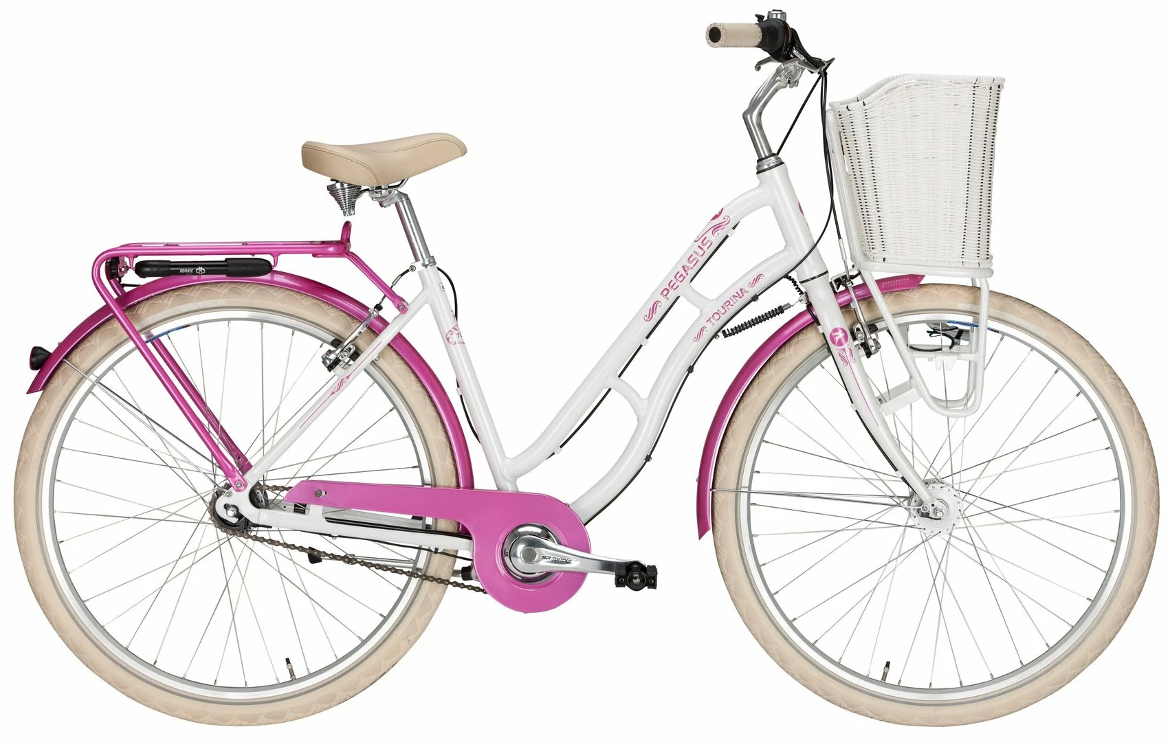 7005 Alu-Rahmen, Alugabel, Shimano Nexus 7-Gang Nabenschaltung mit Revoshift Schalthebel und Rücktritt, Alu Kurbeln, V-Bremsen, Hohlkammer-Felgen, Alu Vorbau, Trekking-Lenker, Creme Reifen, Nabendynamo, Standrücklicht, Frontträger und -Korb sind Zubehör !