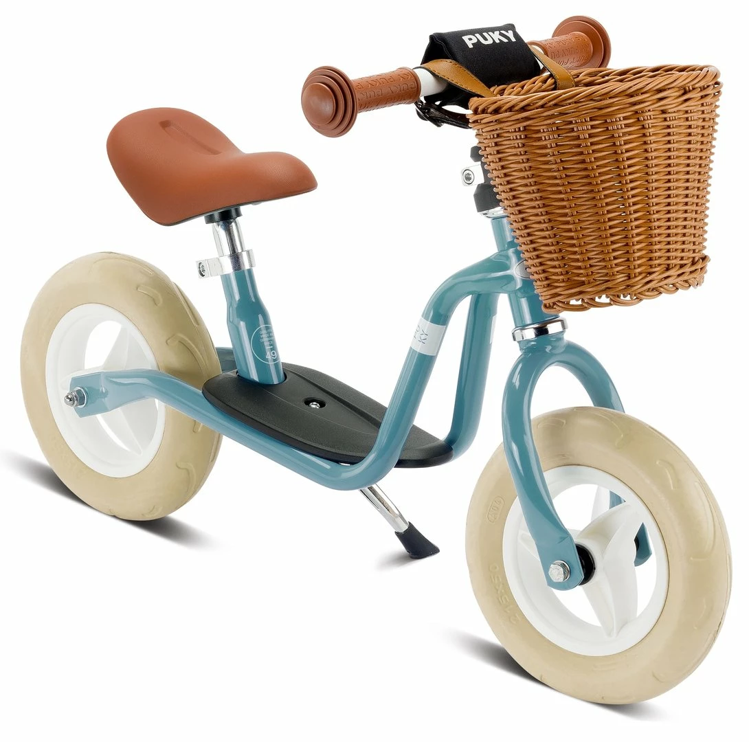 Das PUKY LR M Laufrad ist jetzt auch für die kleinen Helden ab 2 Jahren in stylischer Classic Optik erhältlich. Das PUKY LR M Classic kommt mit einem geflochtenen Lenkerkorb aus bruchsicherem Kunststoff. Splittern unmöglich! Sicherheitslenkergriffe und Lenkerpolster schützen die jungen Piloten zusätzlich. Wie von PUKY gewohnt lassen sich Lenker und Sattel in der Höhe verstellen, um eine möglichst lange Nutzungsdauer für das Kind zu gewährleisten. Der tiefe Rahmeneinstieg des PUKY LR M Classic vereinfacht das Auf- und Absteigen und sorgt für die nötige Sicherheit beim Losfahren und Bremsen. Bei längeren Rollphasen können die jungen Piloten ihre Füße problemlos auf dem cleveren Trittbrett des PUKY LR M Classic abstellen und die Fahrt genießen. Dafür sorgen nicht nur die hochwertige Schaumbereifung, sondern auch die kugelgelagerten Räder und die Lenkung. Mit den drei trendfarben retro-rosé, retro-blau und retro-grün, sowie den braunen Lenkergriffen und dem Sattel, zieht das PUKY LR M Classic alle Blicke auf sich.