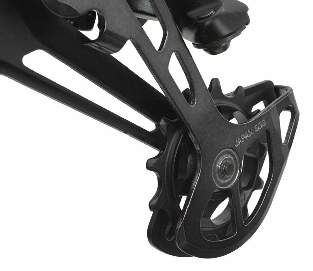 Das Shimano Deore XT RD-M8120-SGS Schaltwerk sorgt für schnelle und präzise Gangwechsel über einen riesigen Übersetzungsbereich. Leit- und Spannrollen mit 13 Zähnen und ein Gummidämpfer dämmen Geräusche und erhöhen den Fahrkomfort. Zudem verbessern sie den Halt der Kette unter allen erdenklichen Bedingungen.