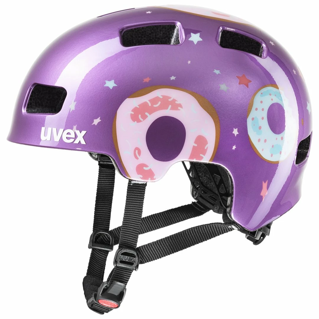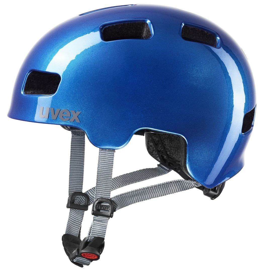 Immer auf Achse, um mit voller Energie ins nächste Abenteuer zu starten. Wenn Kids mit ihren Lauf- und Fahrrädern, Skateboards, Inlineskates und Rollern selbstständig die Umgebung erkunden, ist jede Menge Action angesagt. Umso besser, wenn die Kleinen dabei bestmöglich geschützt sind. Der Uvex HLMT4 ist ein von der Dirtbikeszene inspirierter Hartschalen-Kinderhelm mit stylischem Design. Außen schlagfest, innen stoßabsorbierend und dank IAS-System individuell an den Kopf anpassbar. Zehn große Ventilationsöffnungen verhindern zuverlässig einen Hitzestau. Mit dem monomatic-Verschluss lässt er sich kindgerecht mit nur einer Hand öffnen und schließen.